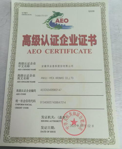 公司为“中国轻工业香料行业十强企业”、“高新技术企业”和“国家知识产权示范企业”,建有“安徽省认定企业技术中心”,是内酯系列合成香料食品安全国家标准、行业标准的主要起草、修订单位之一。公司通过美国Kosher认证和欧盟REACH注册,能够广泛地参与国际市场竞争,60%以上产品出口国外,与芬美意、国际香料、奇华顿等国际公司建立了稳定的业务关系。